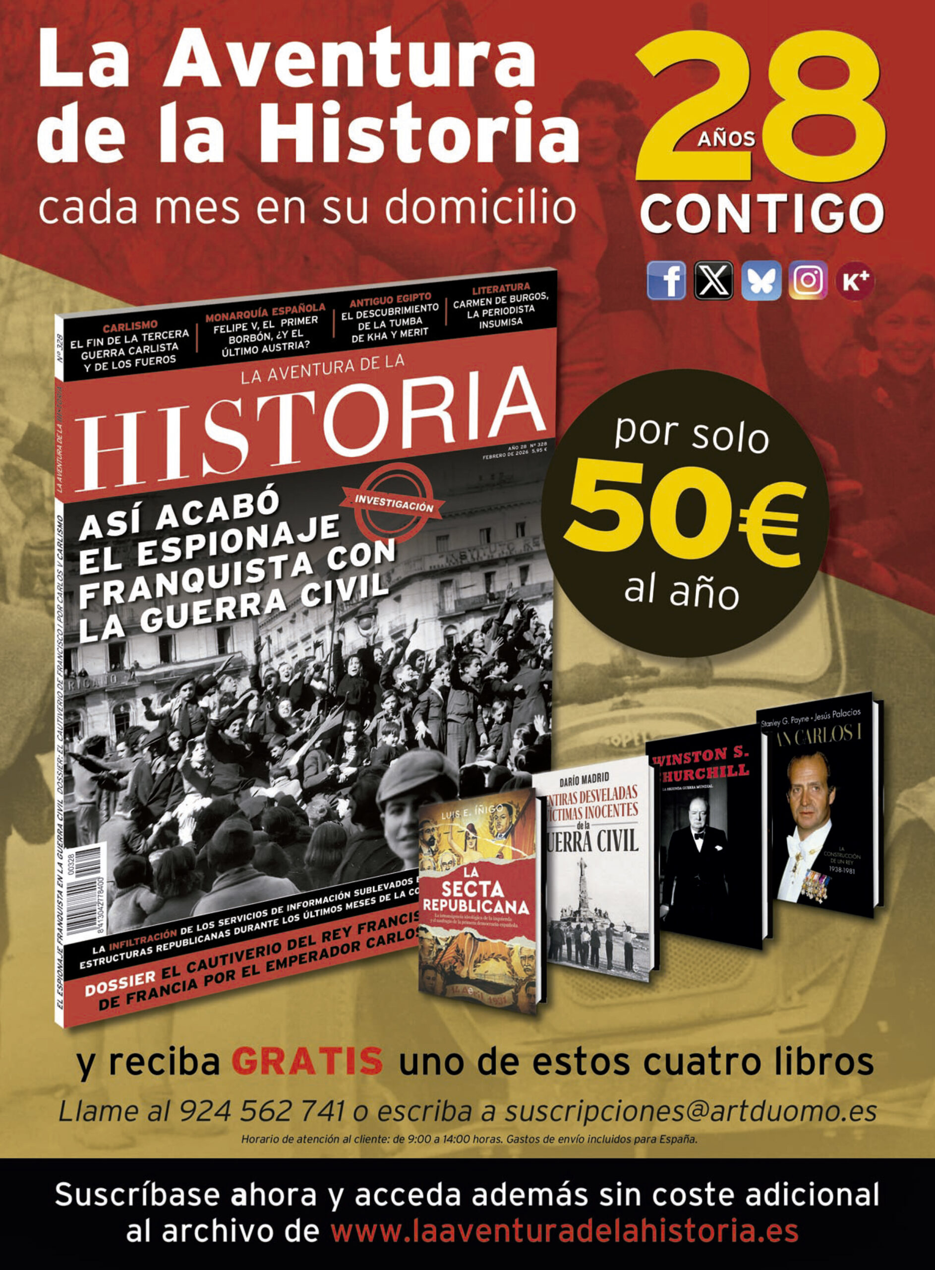 Oferta de suscripción a la revista de historia La Aventura de la Historia, del mes de febrero de 2026.
